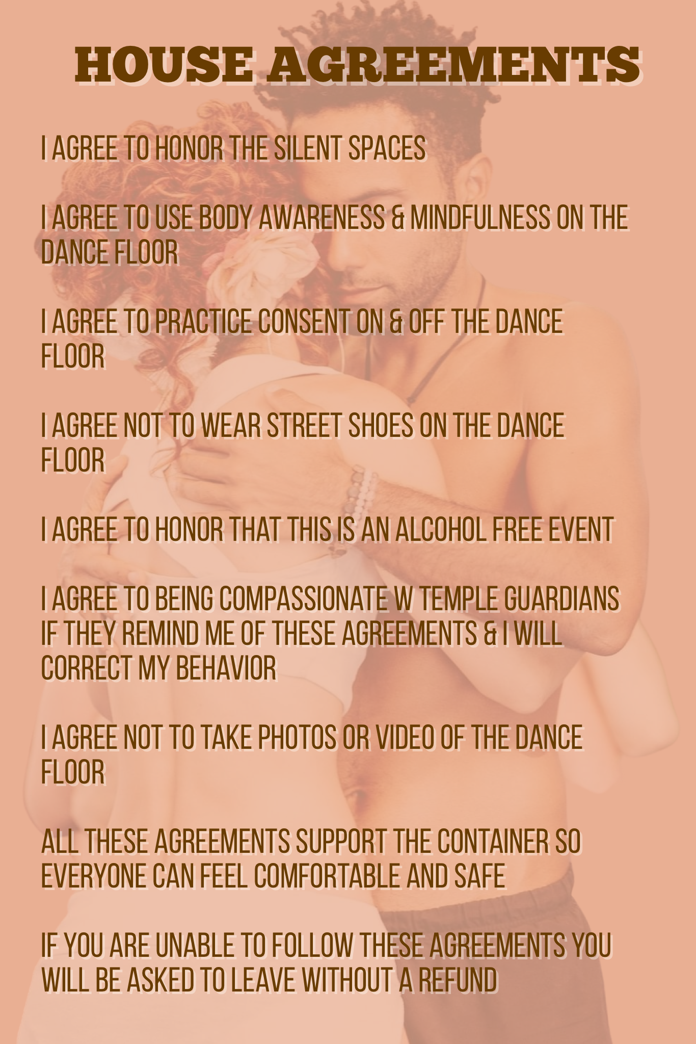 Ecstatic Dance welcomes both solo dancers and those who enjoy connecting with others. Whether you're dancing alone in the collective energy or sharing movement with fellow dancers, here are some gentle guidelines to support everyone's experience: